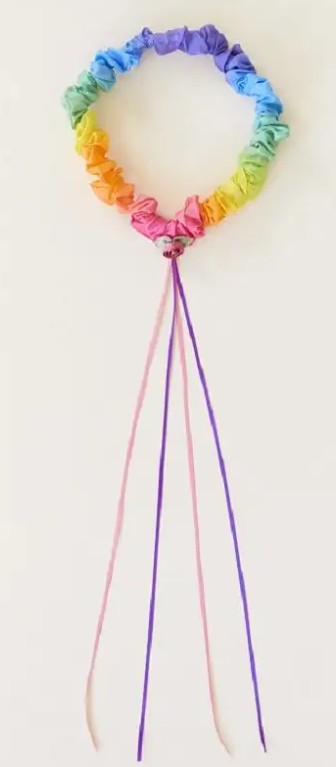 Každá girlanda je zakončena saténovou růžičkou a čtyřmi splývavými stuhami, které dodávají pohybu lehkost a kouzelný vzhled.