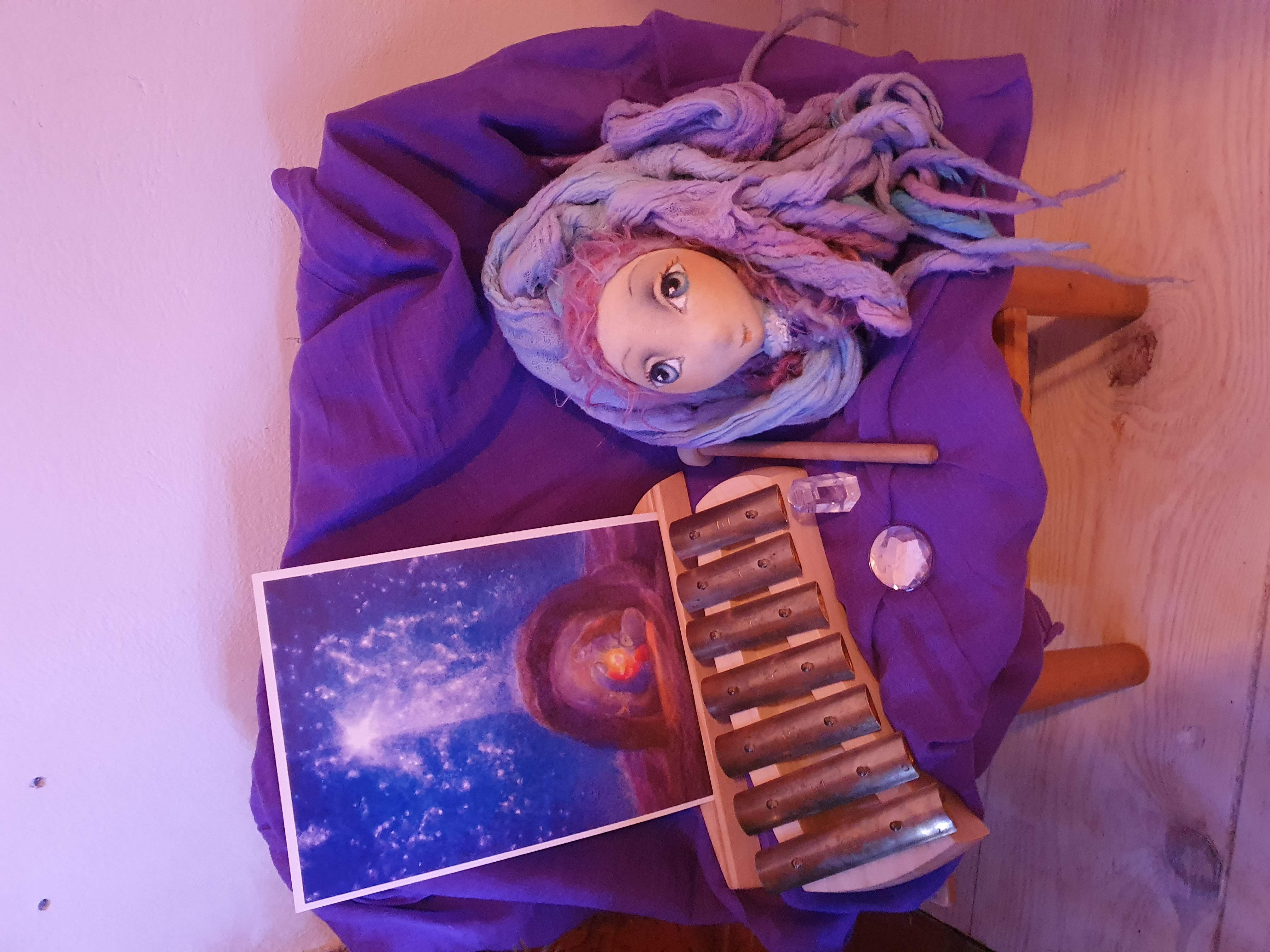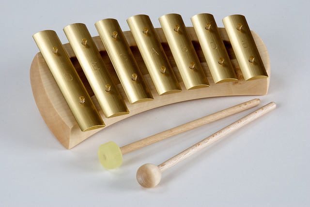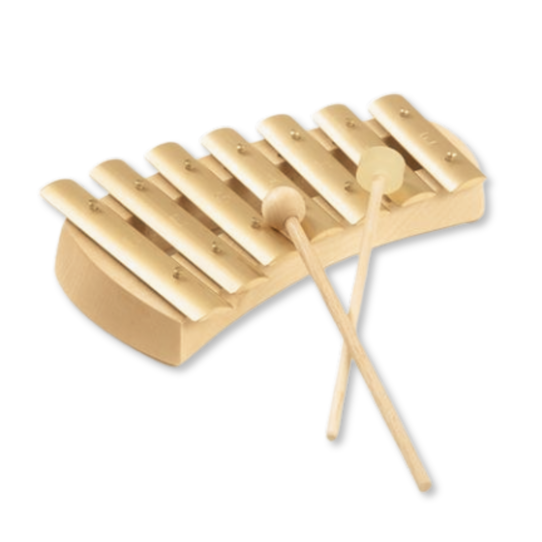 Balení obsahuje pentatonickou zvonkohru se 7 mosaznými kameny, tónový rozsah: d-e-g-a-h-d’-e’, 2 různě tvrdé paličky (dřevo + pryž).
