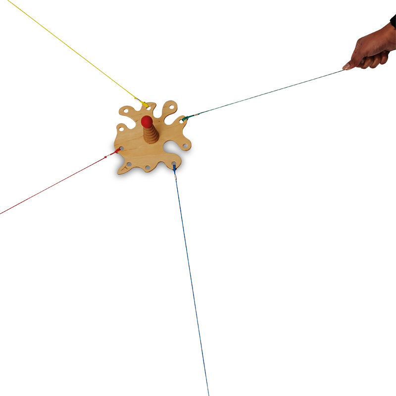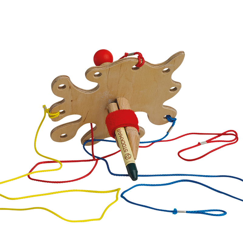 Pohybová hra: kreslič linek. Tato originální dynamická hra děti i dospělé pobaví a zároveň je vede ke vzájemné interakci a spolupráci. Je určena pro skupinku maximálně 10-ti lidí. Kreslit lze venku s použitím kříd na chodník či v místnosti na papírový karton Stockmar voskovými pastelkami. Až 10ks metr dlouhých barevných provázků je upevněno k dřevěnému kresliči linek, celkový průměr hry je tedy 2,2m. Křída či pastelka je fixována ke kresliči suchým zipem. Malí i velcí umělci vytvářejí kresbu tahem a pohybem, hra vyzývá ke spolupráci a řešení úlohy ve skupině. Hra pomáhá rozvíjet soustředění, motoriku a koordinaci obou rukou. Ve skupince 5-ti kreslí tvůrci kresbu obouruč.