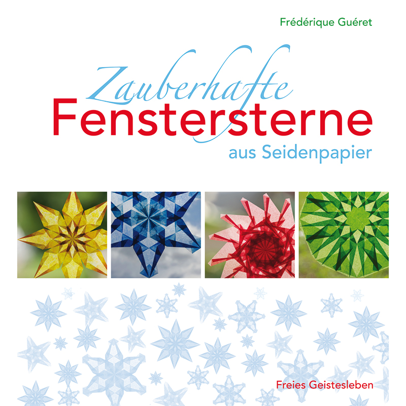 Magické hvězdy do oken - Frederique Gueret.Použitím speciálních technik skládání papíru lze barevný hedvábný papír přeměnit na magické okenní hvězdy, vhodné pro každou roční dobu. Kniha v německém jazyce obsahuje podrobné pokyny pro vytváření 25 okenních hvězd.