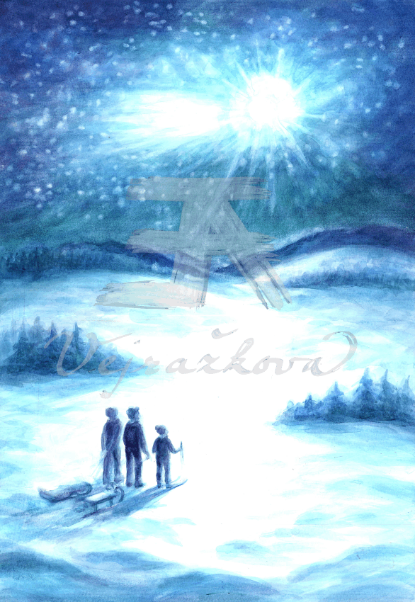 Tisky obrazů Evy Verjažkové, vytvořených vrstveným akvarelem, vznikaly během mnoha let. Autorka o svých obrazech píše: Vrstvený akvarel je časové náročná technika, která vyhovuje mému požadavku na rozsvícení barvy. Jemné závoje barev v rostlinných, figurálních a krajinných motivech vrstvím až do hlubokých, intenzivních tónů , aniž by barvou přestalo prostupovat světlo. U rostlinných motivů jsem v barevných skvrnách, obklopujících hlavní motiv, postupně začala objevovat elementární bytůstky, které stačilo jen zachytit.