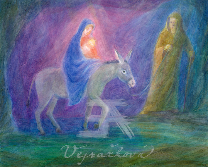 Tisky obrazů Evy Verjažkové, vytvořených vrstveným akvarelem, vznikaly během mnoha let. Autorka o svých obrazech píše: Vrstvený akvarel je časové náročná technika, která vyhovuje mému požadavku na rozsvícení barvy. Jemné závoje barev v rostlinných, figurálních a krajinných motivech vrstvím až do hlubokých, intenzivních tónů , aniž by barvou přestalo prostupovat světlo. U rostlinných motivů jsem v barevných skvrnách, obklopujících hlavní motiv, postupně začala objevovat elementární bytůstky, které stačilo jen zachytit.