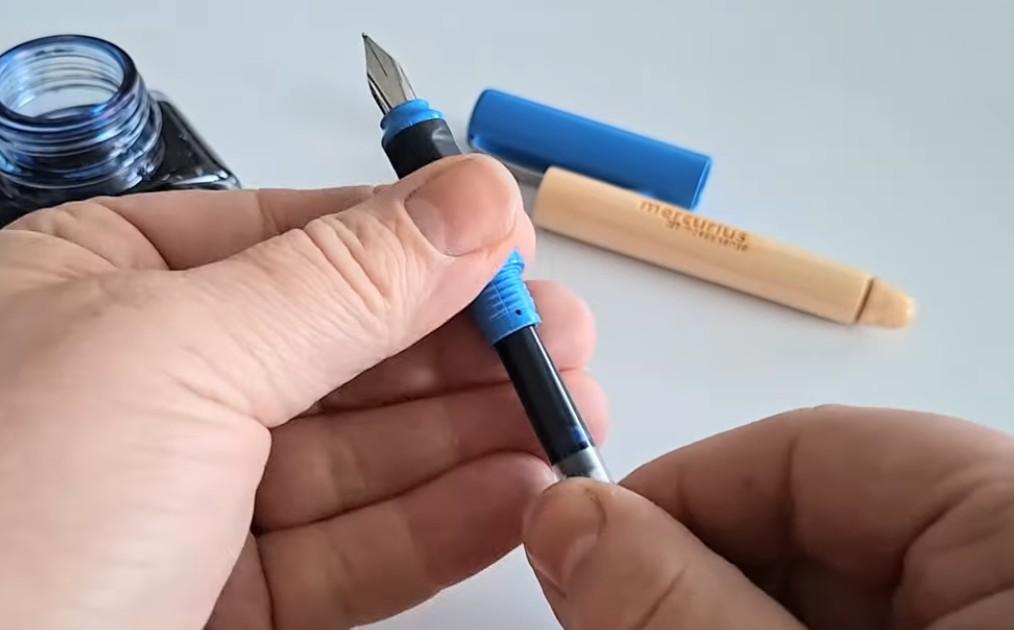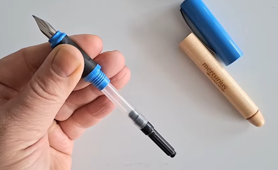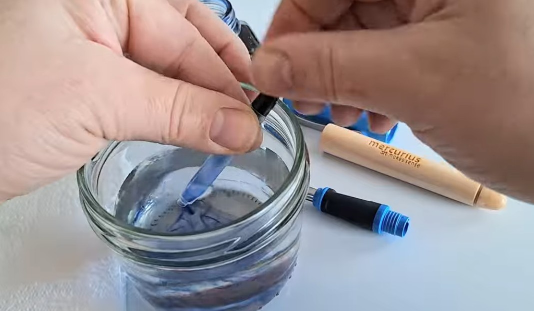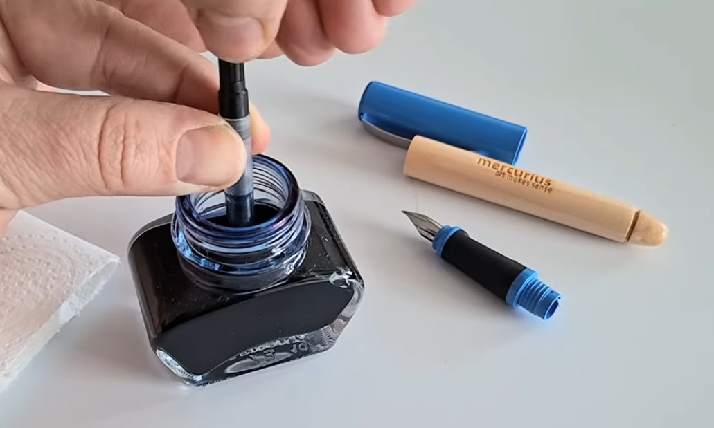 Naučte se, jak doplnit zásobník inkoustem a jak vyčistit hrot pera propláchnutím vodou pomocí zásobníku.