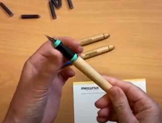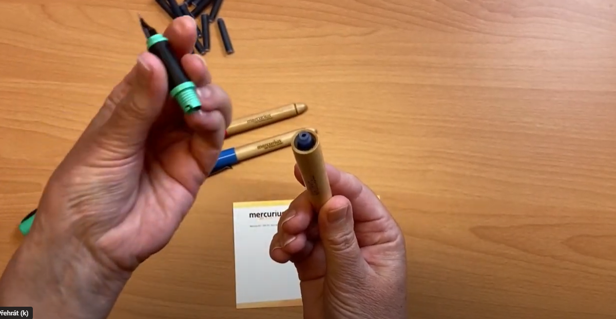 Správný způsob výměny bombičky v plnicím peru pomocí dvou bombiček.
