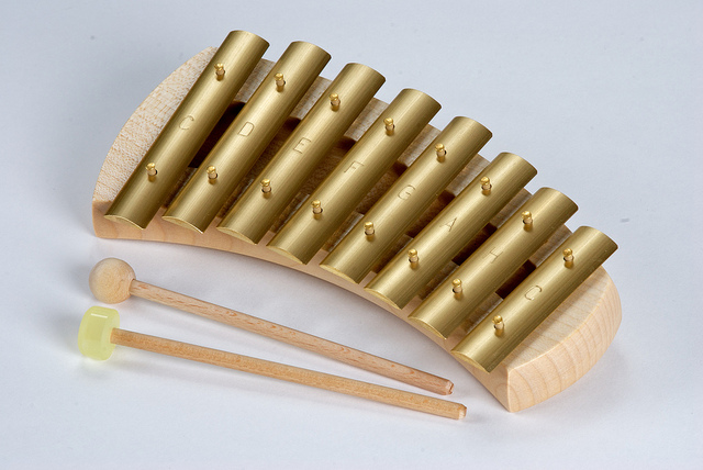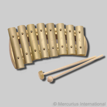 Balení obsahuje diatonickou zvonkohru s 8 mosaznými kameny, tónový rozsah: c-d-e-f-g-a-h-c´, 2 různě tvrdé paličky (dřevo + pryž).