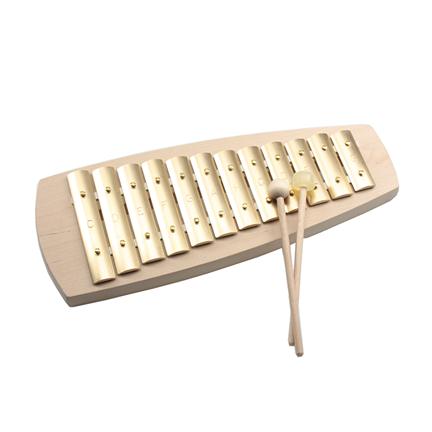 Balení obsahuje diatonickou zvonkohru s 12 mosaznými kameny, tónový rozsah: c-d-e-f-g-a-h-c-d-e-f-g, 2 různě tvrdé paličky (dřevo + pryž).