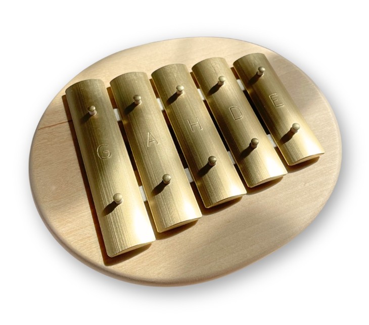 Tónové kameny jsou vyrobeny z kvalitní mosazné slitiny bez obsahu olova, která poskytuje teplý, čistý a vyvážený tón. Rám z přírodního, nelakovaného březového dřeva je příjemný na dotek a podtrhuje přirozený a harmonický charakter nástroje.