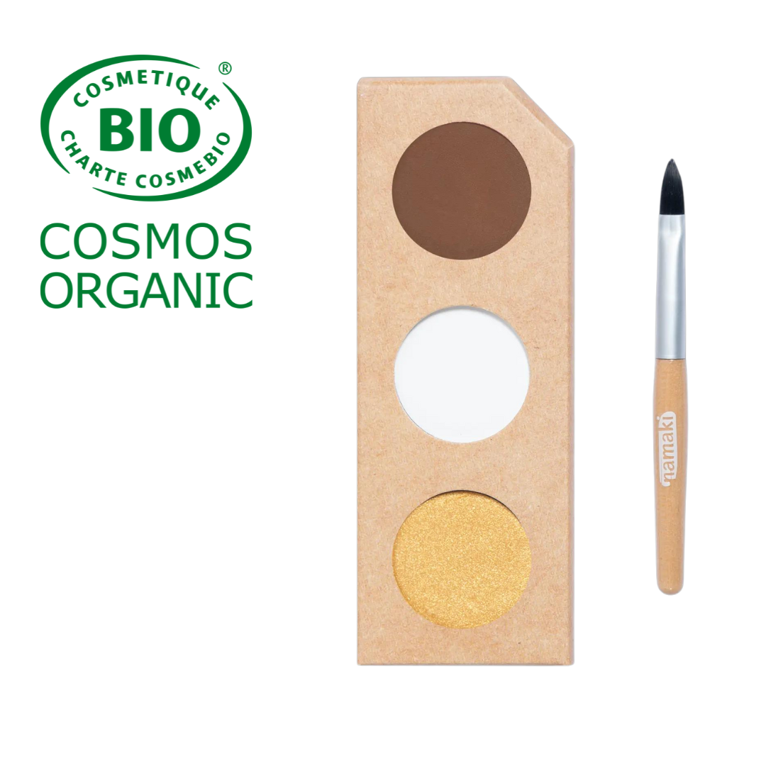 3 odstíny barev na obličej a tělo v BIO kvalitě. Odstíny můžeme přímo na pokožce míchat a stvořit lva, žirafu či jakékoli zvířátko dle vlastní fantazie. Barvy mají certifikaci Cosmos Organic, obsahují 99% přírodních a 20% organických složek. Speciálně navržené pro dětskou pokožku. Nanášíme štětcem či houbičkou. Stačí štětec lehce namočit a můžeme začít.