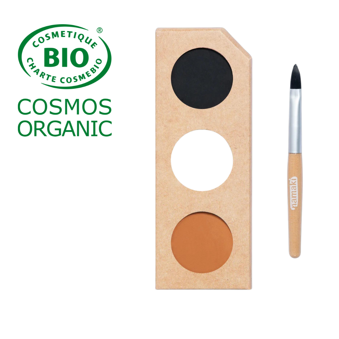 3 odstíny barev na obličej a tělo v BIO kvalitě. Odstíny můžeme přímo na pokožce míchat a stvořit tygra, lišku či jakékoli zvířátko dle vlastní fantazie. Barvy mají certifikaci Cosmos Organic, obsahují 99% přírodních a 20% organických složek. Speciálně navržené pro dětskou pokožku. Nanášíme štětcem či houbičkou. Stačí štětec lehce namočit a můžeme začít.
