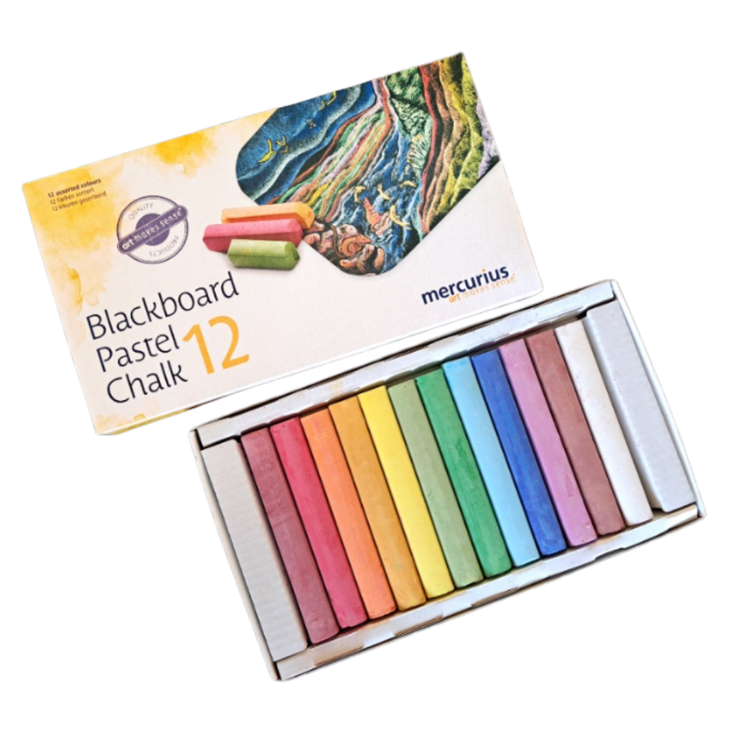 Křídy na tabuli mercurius - MĚKKÉ, 12 barev