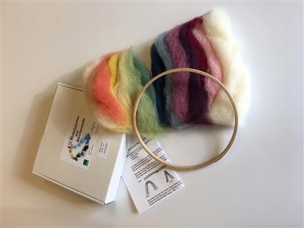 Sada obsahuje vše na výrobu 13-ti postaviček z vlny na zavěšení do dětského pokoje či do třídy mateřské školky. V balení najdete 13ks organické vlny barvené rotlinnými pigmenty různých odstinů, dřevěný kruh a návod k použití s obrázky.