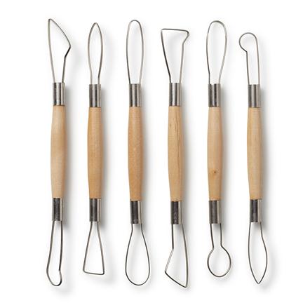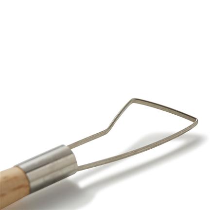 Sochařský a keramický nástroj - drátová očka, oboustranná. Očka jsou vyrobena z pevného plochého drátu, ideální pro ubírání hmoty a tvoření textury v hlíně dle fantazie umělce. Úchopová část je vyrobena z bukového dřeva.