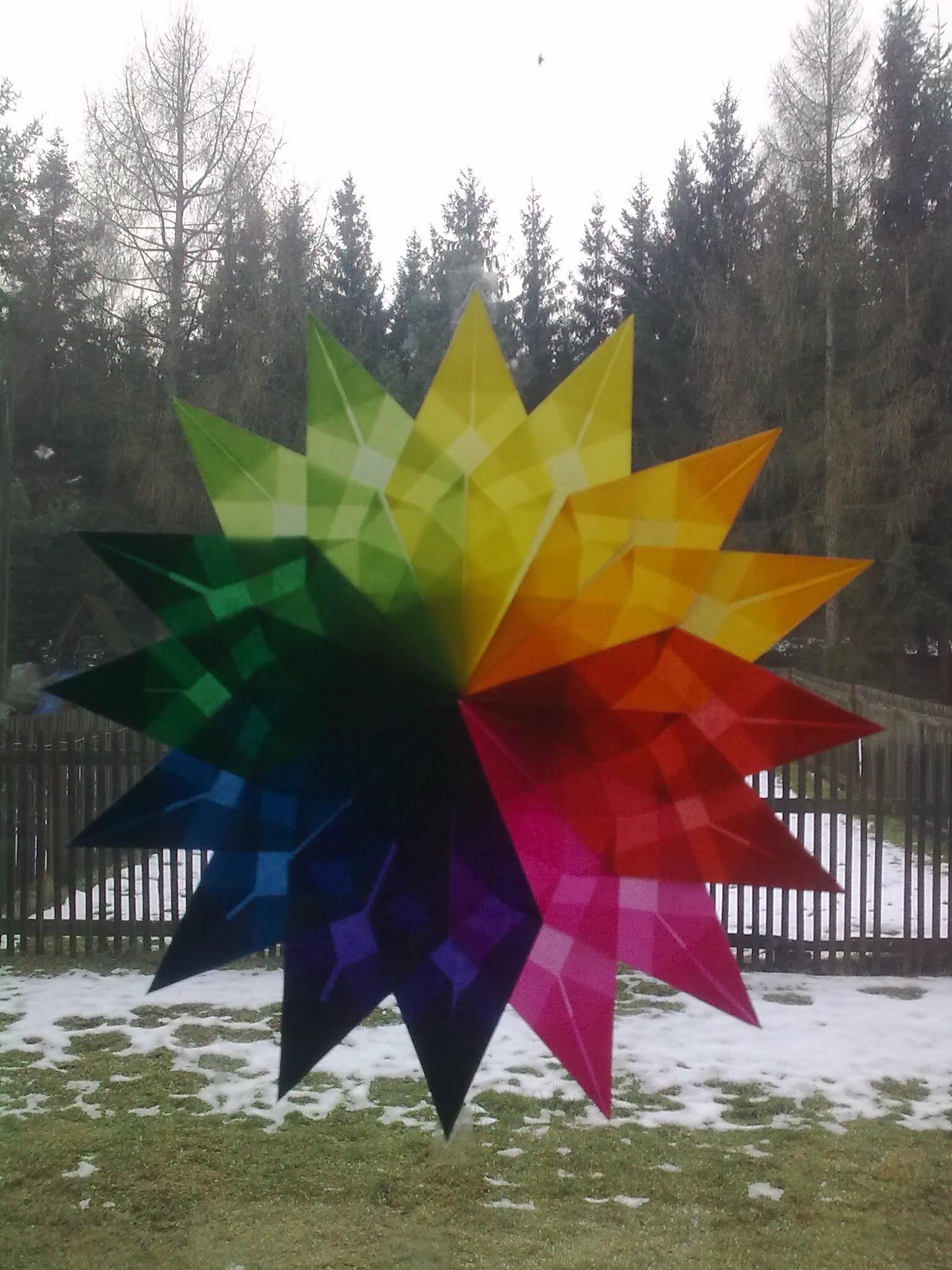 Barvy papírů: modrá, tmavě zelená, žlutá, červená, bílá