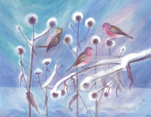 Tisky obrazů Evy Verjažkové, vytvořených vrstveným akvarelem, vznikaly během mnoha let. Autorka o svých obrazech píše: Vrstvený akvarel je časové náročná technika, která vyhovuje mému požadavku na rozsvícení barvy. Jemné závoje barev v rostlinných, figurálních a krajinných motivech vrstvím až do hlubokých, intenzivních tónů , aniž by barvou přestalo prostupovat světlo. U rostlinných motivů jsem v barevných skvrnách, obklopujících hlavní motiv, postupně začala objevovat elementární bytůstky, které stačilo jen zachytit.