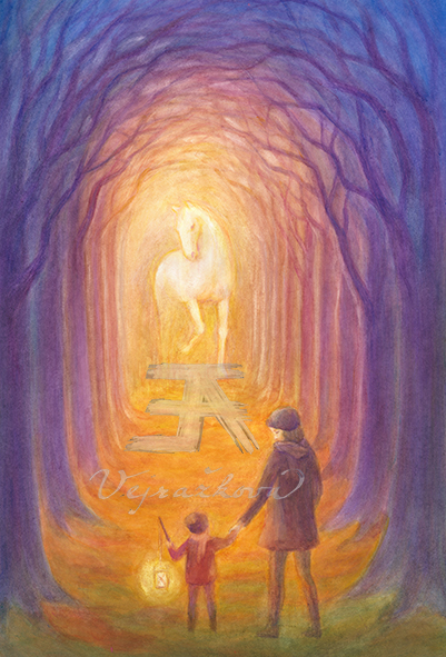 Tisky obrazů Evy Verjažkové, vytvořených vrstveným akvarelem, vznikaly během mnoha let. Autorka o svých obrazech píše: Vrstvený akvarel je časové náročná technika, která vyhovuje mému požadavku na rozsvícení barvy. Jemné závoje barev v rostlinných, figurálních a krajinných motivech vrstvím až do hlubokých, intenzivních tónů , aniž by barvou přestalo prostupovat světlo. U rostlinných motivů jsem v barevných skvrnách, obklopujících hlavní motiv, postupně začala objevovat elementární bytůstky, které stačilo jen zachytit.