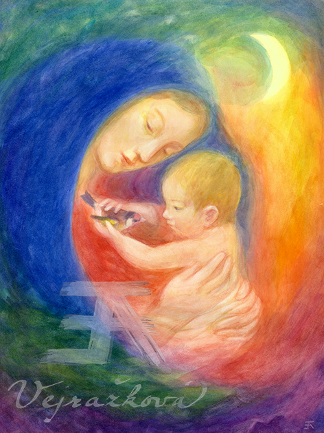 Tisky obrazů Evy Verjažkové, vytvořených vrstveným akvarelem, vznikaly během mnoha let. Autorka o svých obrazech píše: Vrstvený akvarel je časové náročná technika, která vyhovuje mému požadavku na rozsvícení barvy. Jemné závoje barev v rostlinných, figurálních a krajinných motivech vrstvím až do hlubokých, intenzivních tónů , aniž by barvou přestalo prostupovat světlo. U rostlinných motivů jsem v barevných skvrnách, obklopujících hlavní motiv, postupně začala objevovat elementární bytůstky, které stačilo jen zachytit.