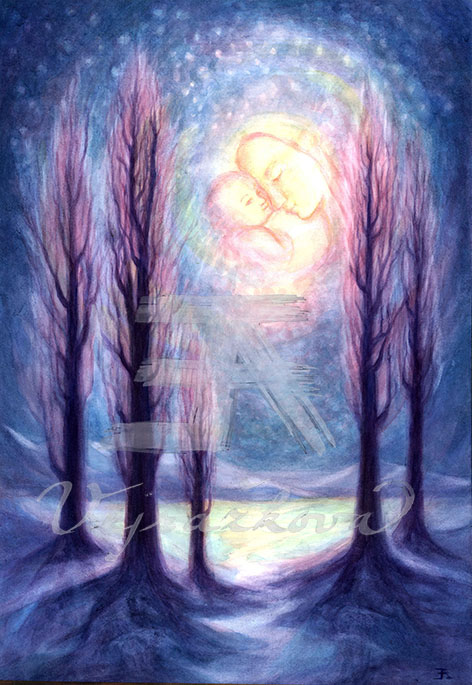 Tisky obrazů Evy Verjažkové, vytvořených vrstveným akvarelem, vznikaly během mnoha let. Autorka o svých obrazech píše: Vrstvený akvarel je časové náročná technika, která vyhovuje mému požadavku na rozsvícení barvy. Jemné závoje barev v rostlinných, figurálních a krajinných motivech vrstvím až do hlubokých, intenzivních tónů , aniž by barvou přestalo prostupovat světlo. U rostlinných motivů jsem v barevných skvrnách, obklopujících hlavní motiv, postupně začala objevovat elementární bytůstky, které stačilo jen zachytit.