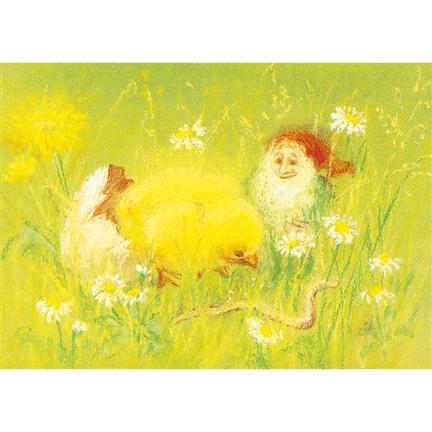 Pohled - Skřítek s kuřátkem