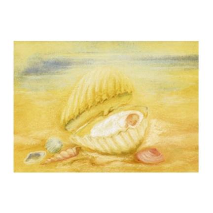 Pohled - Dítě v mušli, přání k narození dítěte