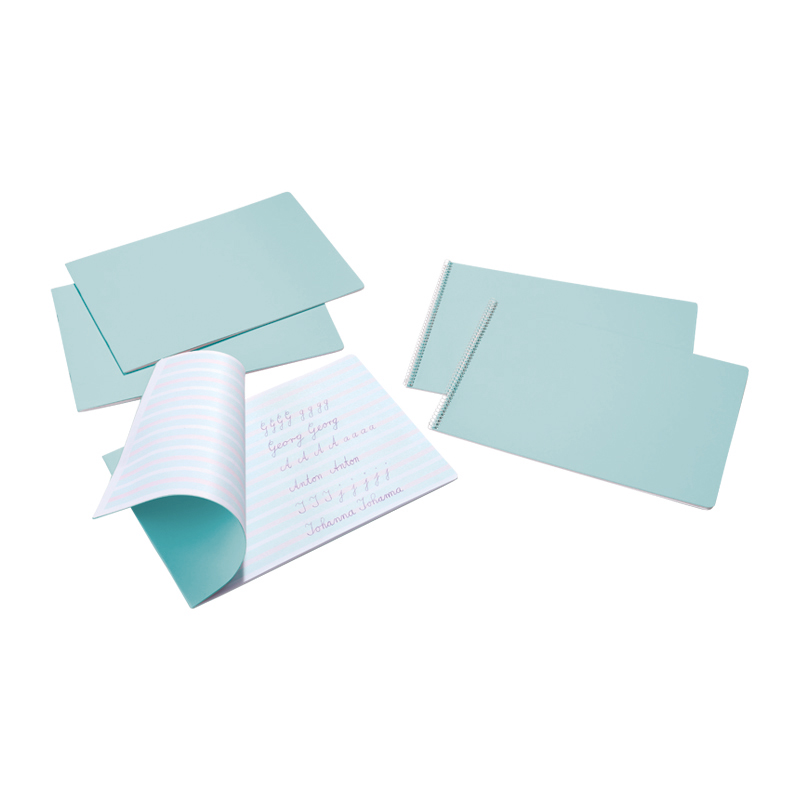 Sešit na procvičování psaní. V poměru 6-6-6mm se střídá zelená a růžová část řádku (viz obrázek). Barva řádku tak usnadňuje dítěti vepsaní písmena do řádku, dítě tak velmi lehce získá povědomí o vzájemném poměru písma.