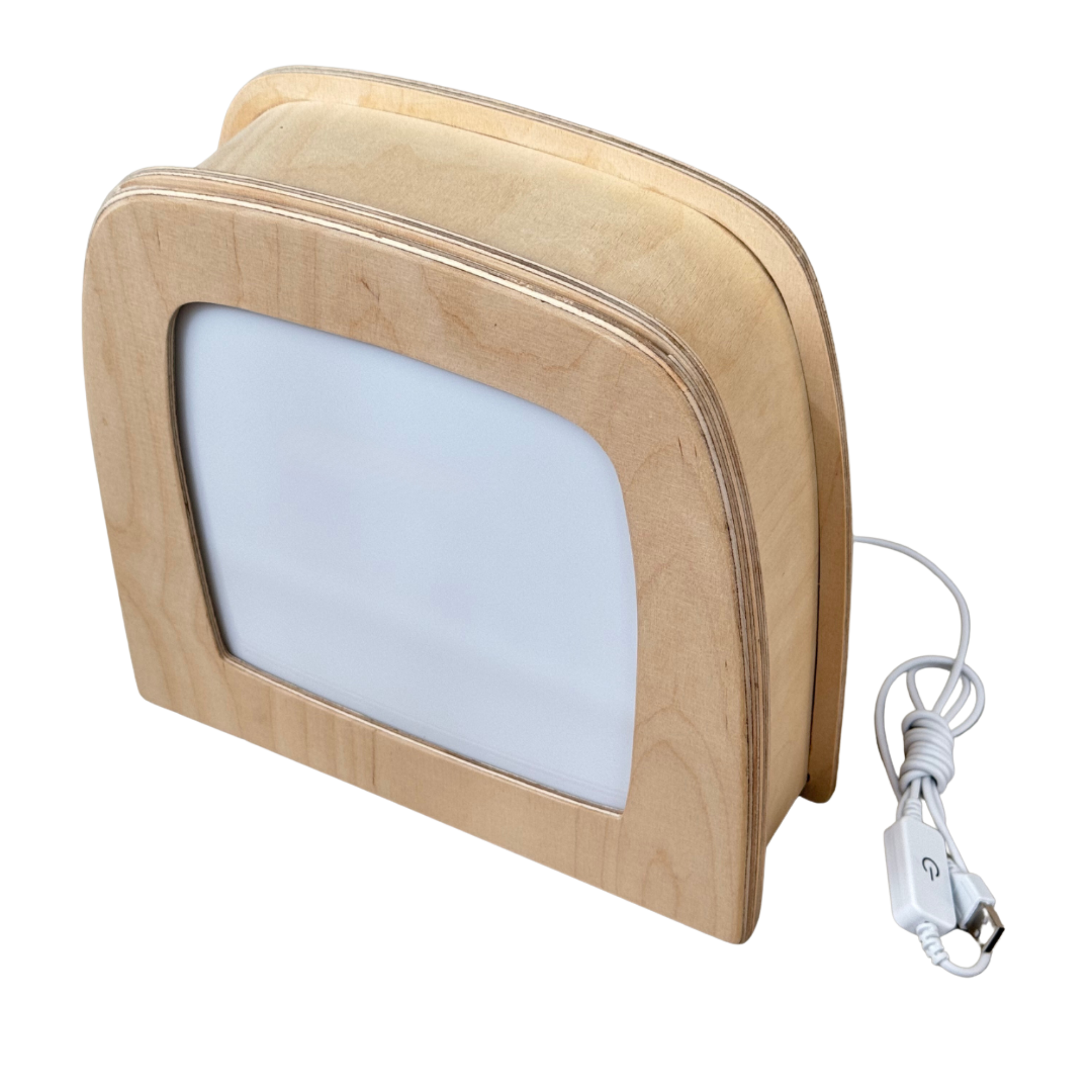 S láskou ručně vyrobená dřevěná lampa, která čeká, až jí vyberete stínítko podle svého srdce. Stačí ji zapojit, dotknout se vypínače – a světlo rozzáří váš svět jemným kouzlem. Každá lampa je zabalena v pevném bavlněném dárkovém sáčku, připravená stát se součástí vašeho domova nebo dárkem pro někoho blízkého.