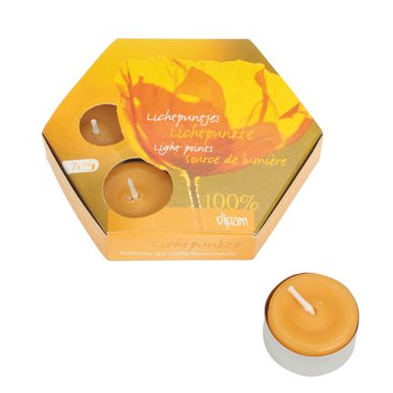 Čajové svíčky Dipam vyrobené ze 100% včelího vosku. Délka hoření až 4 hodiny.