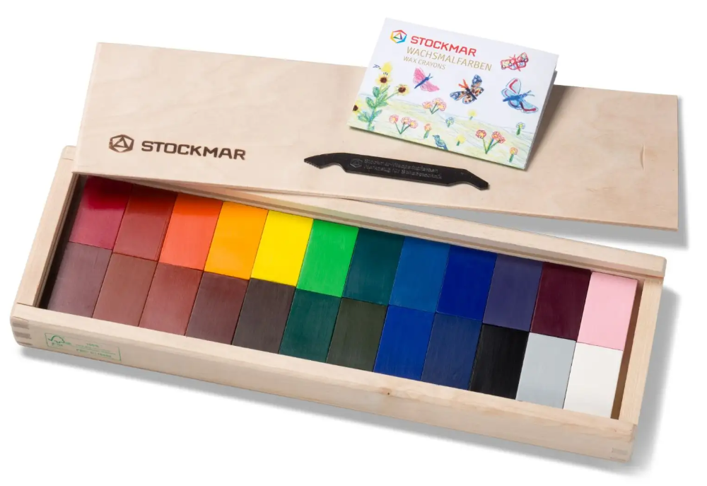 Sada Stockmar bločků v dřevěné krabičce, složení barev - viz níže. Voskové bločky splňují nejvyšší vzdělávací, estetické a umělecké nároky. Stockmar voskové bločky - elegantní design, atraktivní balení a příjemná vůně, to vše působí na smysly dítěte. Barvy se nádherně lesknou, díky transparentnosti je možné barvy míchat a použití je skutečně všestranné – kresba, malba, vrstvení, škrábání a tání barvy. Stockmar bločky slibují roky potěšení z tvorby i výsledku tvoření – výkresy nelepí, nerozmazávají se. Bločky jsou netoxické, nerozbitné, díky tvaru nekazí držení ruky, poskytují vše pro smysluplné vzdělání nejmenších i dětí školou povinných.