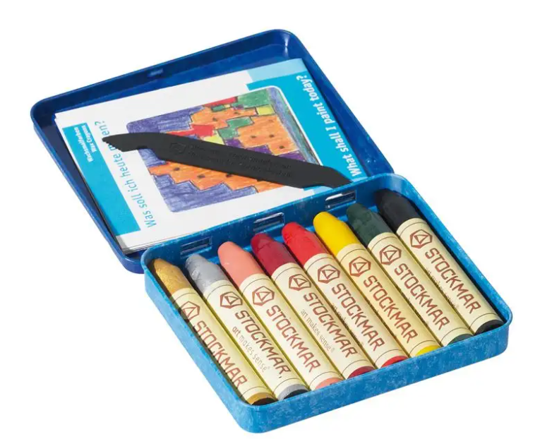 Sada Stockmar pastelek v plechové krabičce, složení barev - doplňková paleta (viz níže). Voskové pastelky splňují nejvyšší vzdělávací, estetické a umělecké nároky. Stockmar voskové pastelky - elegantní design, atraktivní balení a příjemná vůně, to vše působí na smysly dítěte. Barvy se nádherně lesknou, díky transparentnosti je možné barvy míchat a použití je skutečně všestranné – kresba, malba, vrstvení, škrábání a tání barvy. Stockmar pastelky slibují roky potěšení z tvorby i výsledku tvoření – výkresy nelepí, nerozmazávají se. pastelky jsou netoxické a poskytují vše pro smysluplné vzdělání nejmenších i dětí školou povinných.